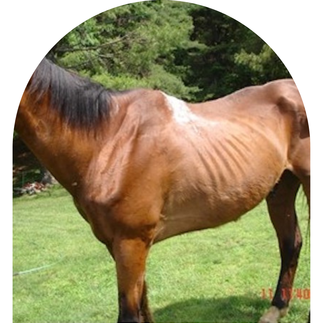 Within 8 months, Prince had gained over 250 lbs. The pathetic, wounded, starving Bay gelding who painfully backed off of our trailer in May 2011, would not be recognizable now. Although sleek and shiny with a flowing black mane and tail, there will always be traces of the indentation at his withers. We lost Prince in 2020 at the age of 32.